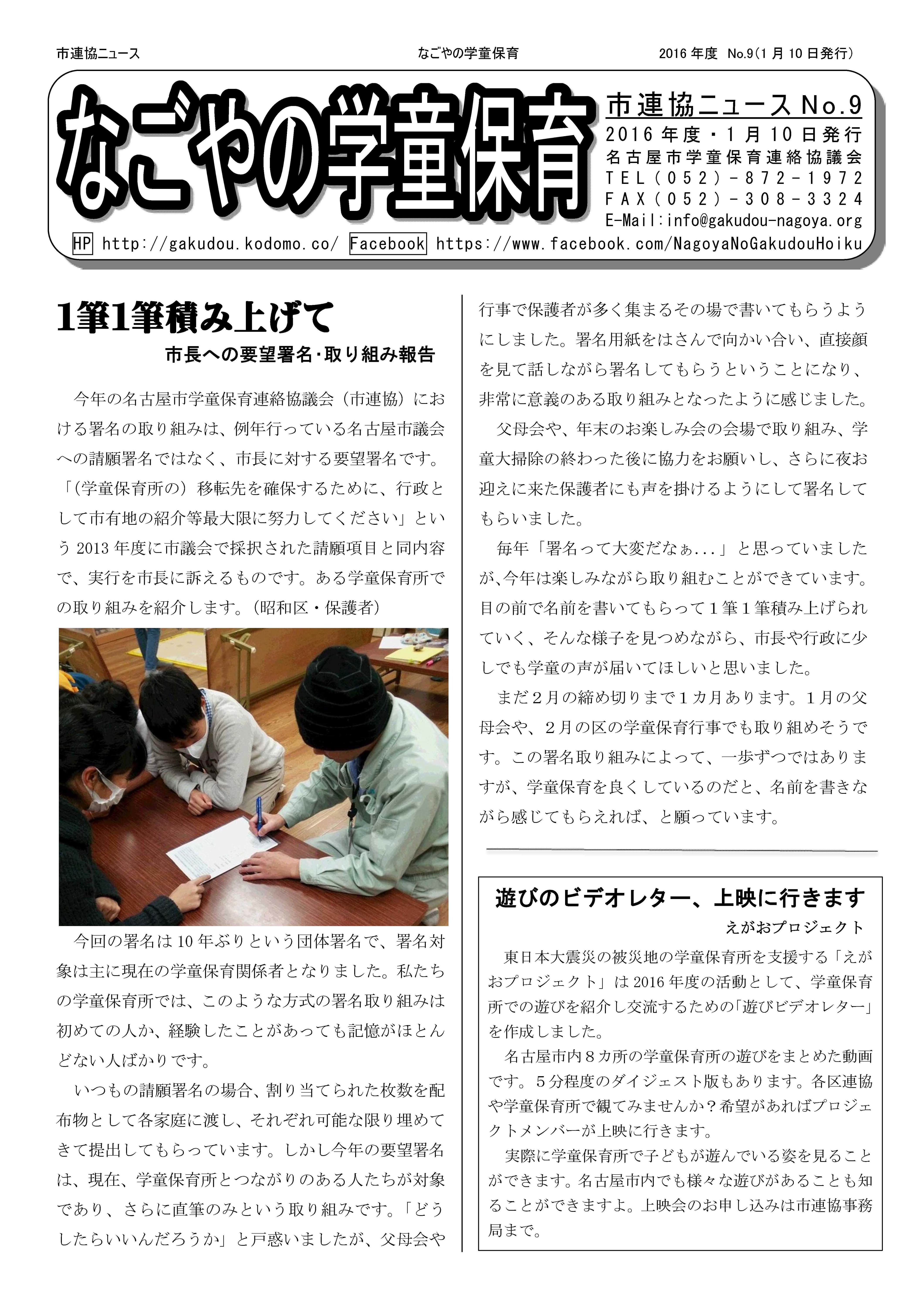 市連協ニュース No,9 団体署名締め切りは2月区代表者会議です。一筆ずつ積み重ねましょう!