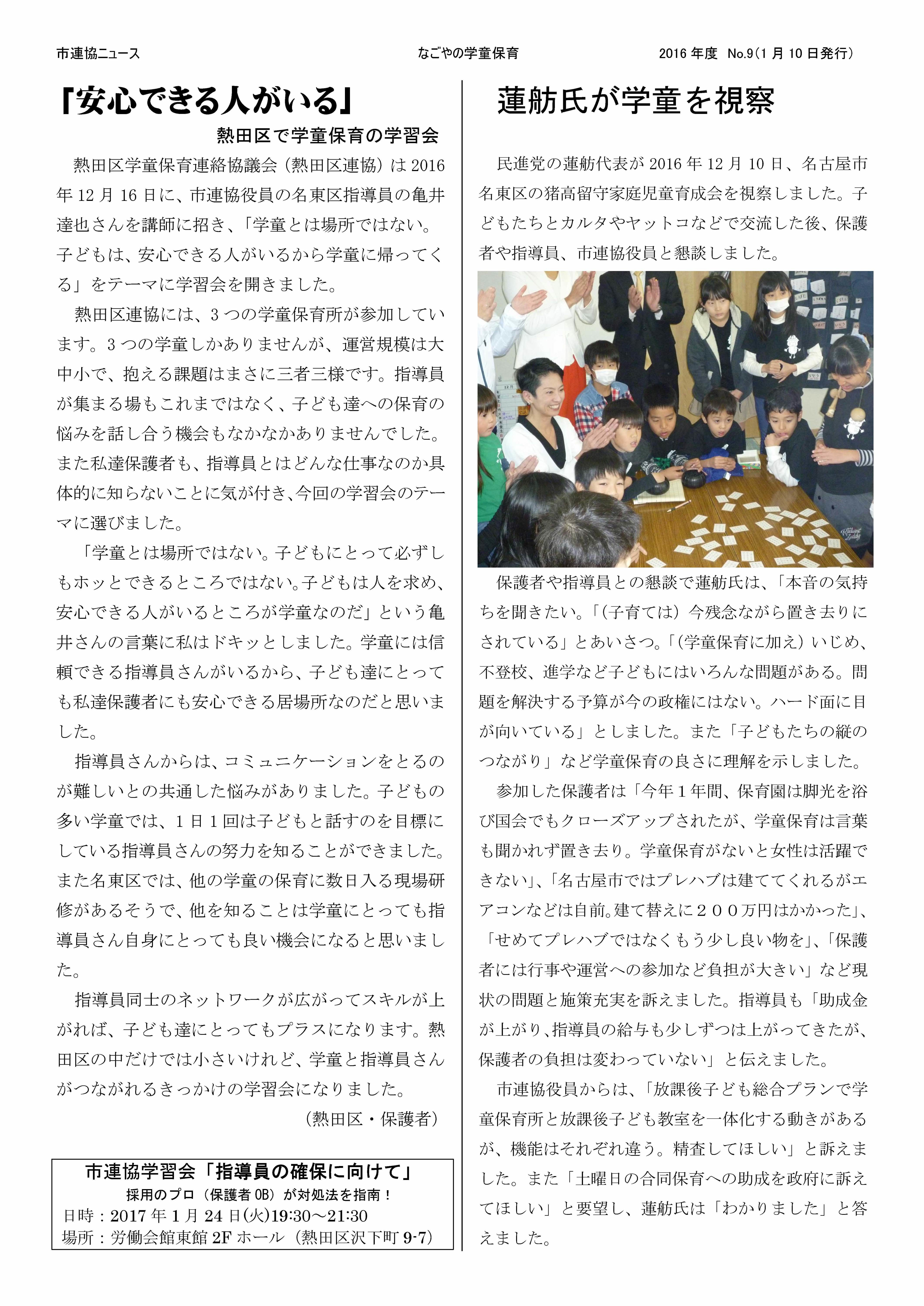 市連協ニュース 2017年度No,9 2018年1月9日発行、最新号。