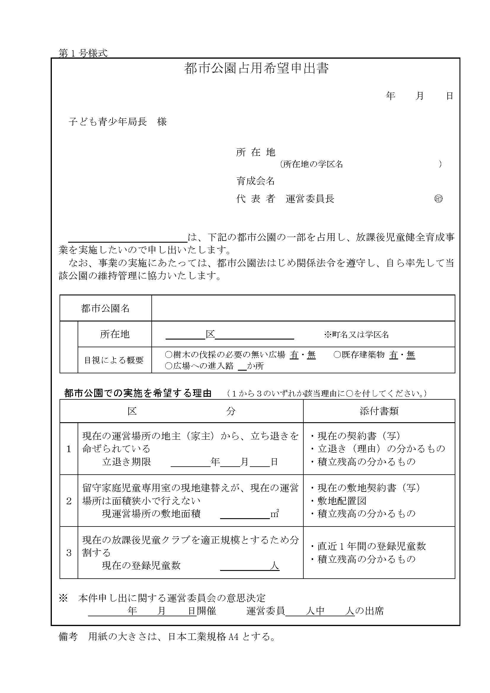 都市公園占有希望申出書