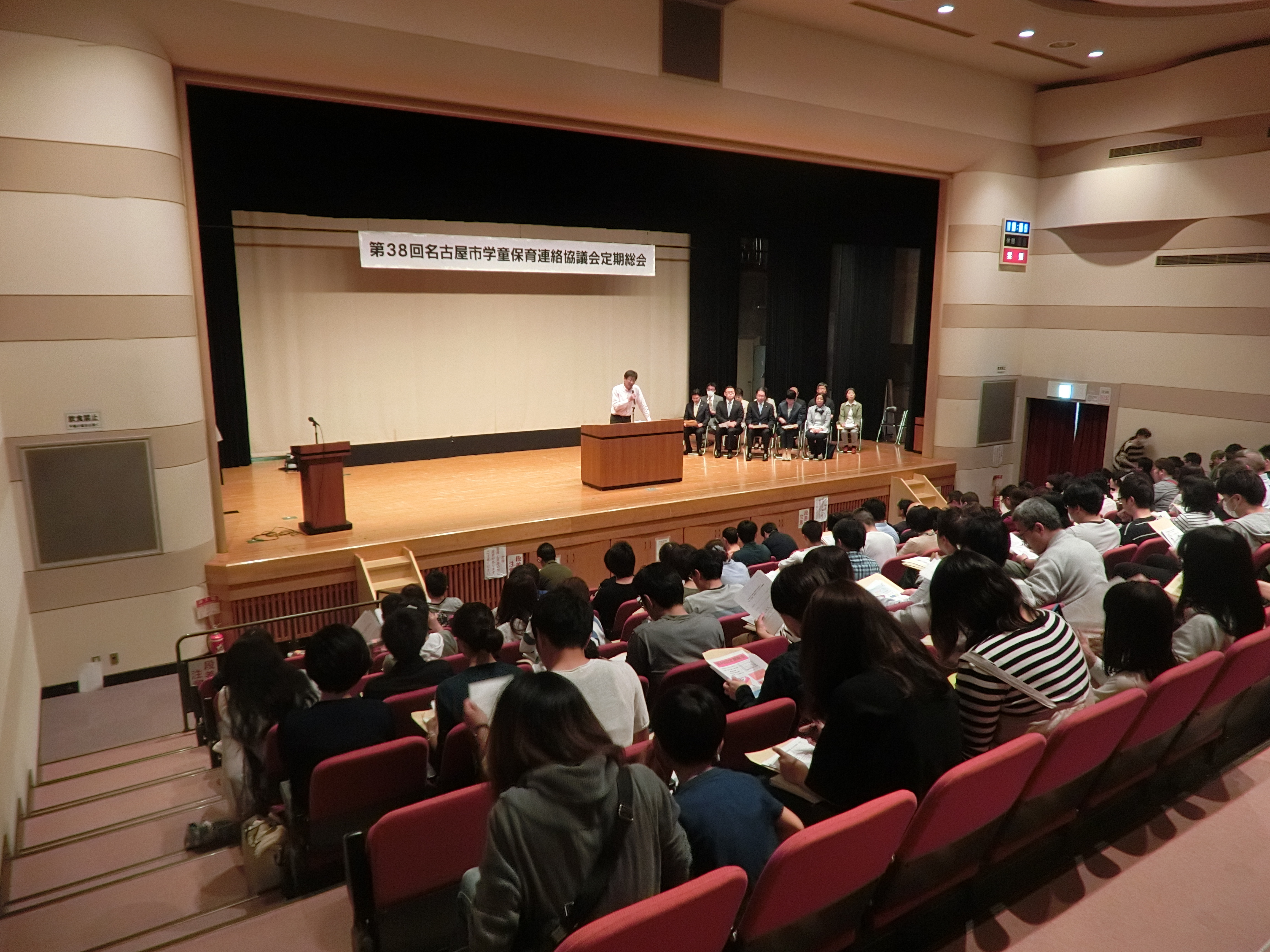 名古屋市学童連絡協議会(市連協)は4月22日(日)、名古屋市中区のイーブルなごやで、第38回定期総会を開きました。150人が出席。名古屋市が提案する都市公園の学童保育利用の具体化や、複数の学童保育所が指導員を一括で雇用する「合同運営」の制度化を目指す2018年度の活動方針案や新役員体制を満場一致で承認しました。
