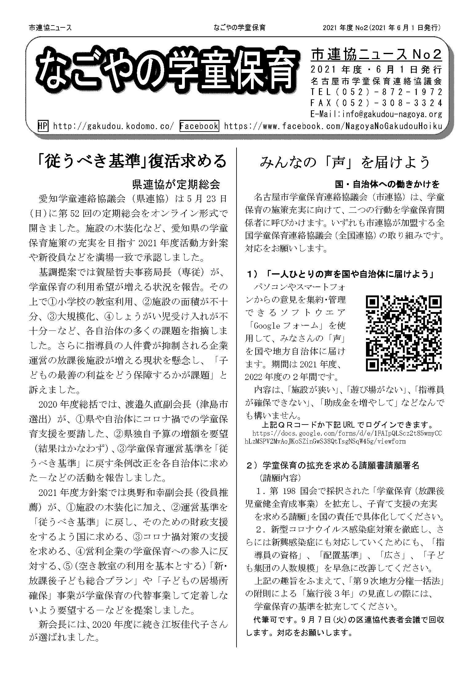 うち愛知県学童保育連絡協議会(県連協)で15788 筆(6 月30 日では16,216 筆)、名古屋市学童保育連絡協議会(市連協)で8,868 筆(6 月30 日では8,876 筆)を集めました。